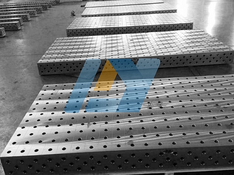 三維柔性平臺的承載能力高,鋼性穩(wěn)定,它的五個面均加工有規(guī)則的孔,并刻有網(wǎng)線。焊接平臺可方便地延伸和擴展,組合。經(jīng)擴展的標準臺面可模塊化的定位和夾緊直接連接在一起。在安裝、調整和定位工件過程將柔性三維組合焊接工裝系統(tǒng)的通用功能展示的優(yōu)良,尤其在了大型工件方面的應用上。